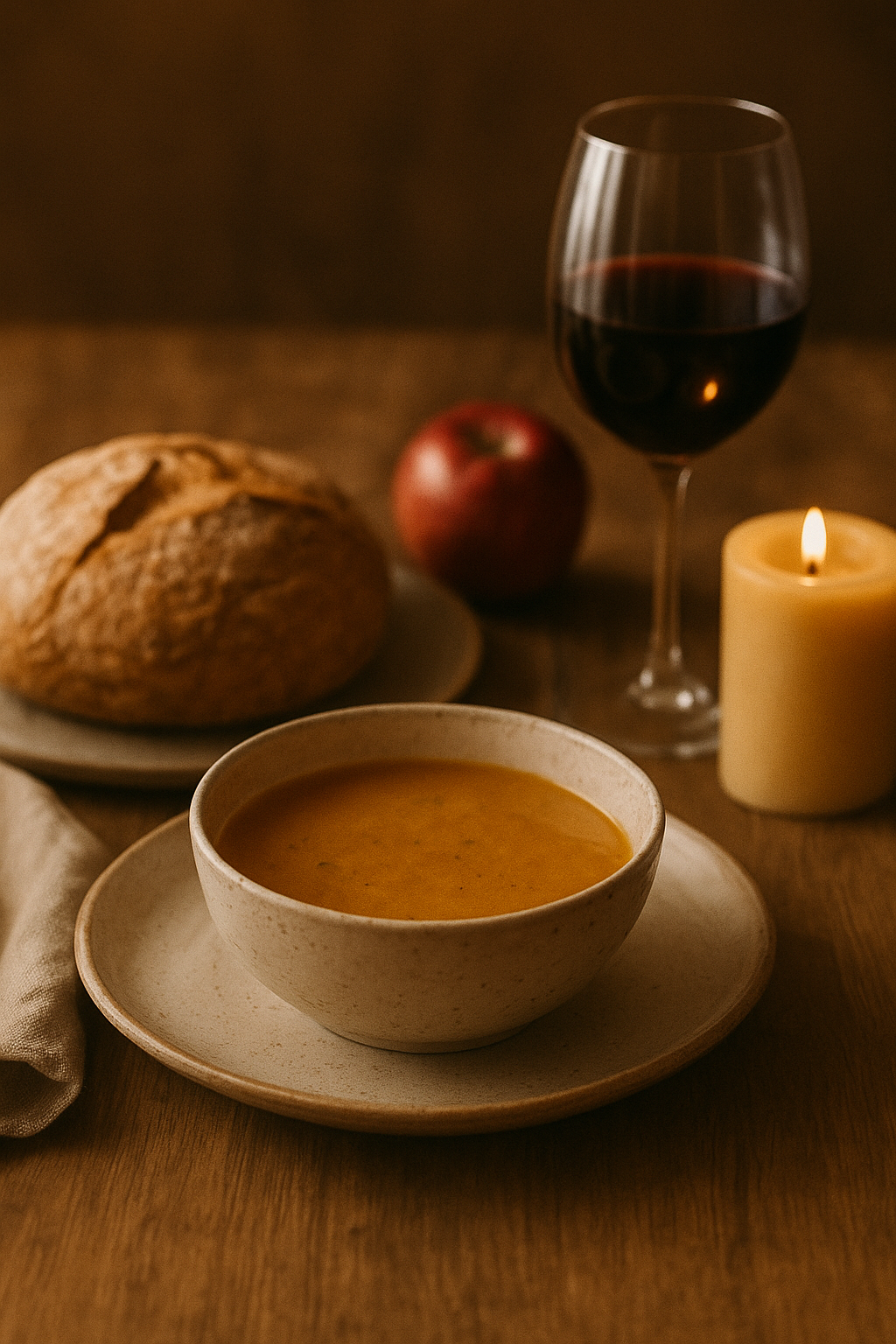 Menu idea: a pot of soup, homemade bread (or a rustic loaf from your favourite bakery), a small cheese board, and something seasonal like apple butter or chutney (yes, it exists, and it’s delicious).